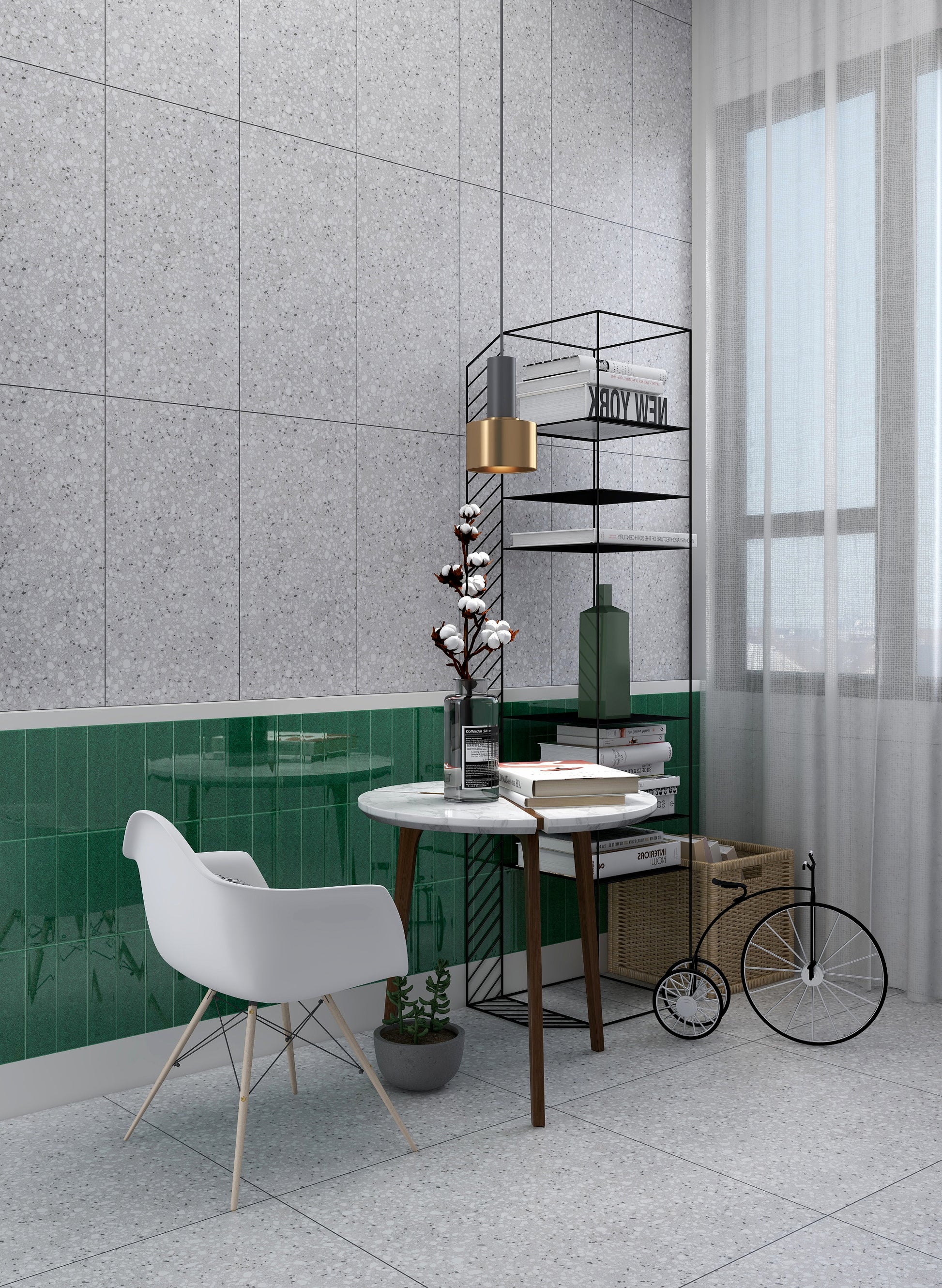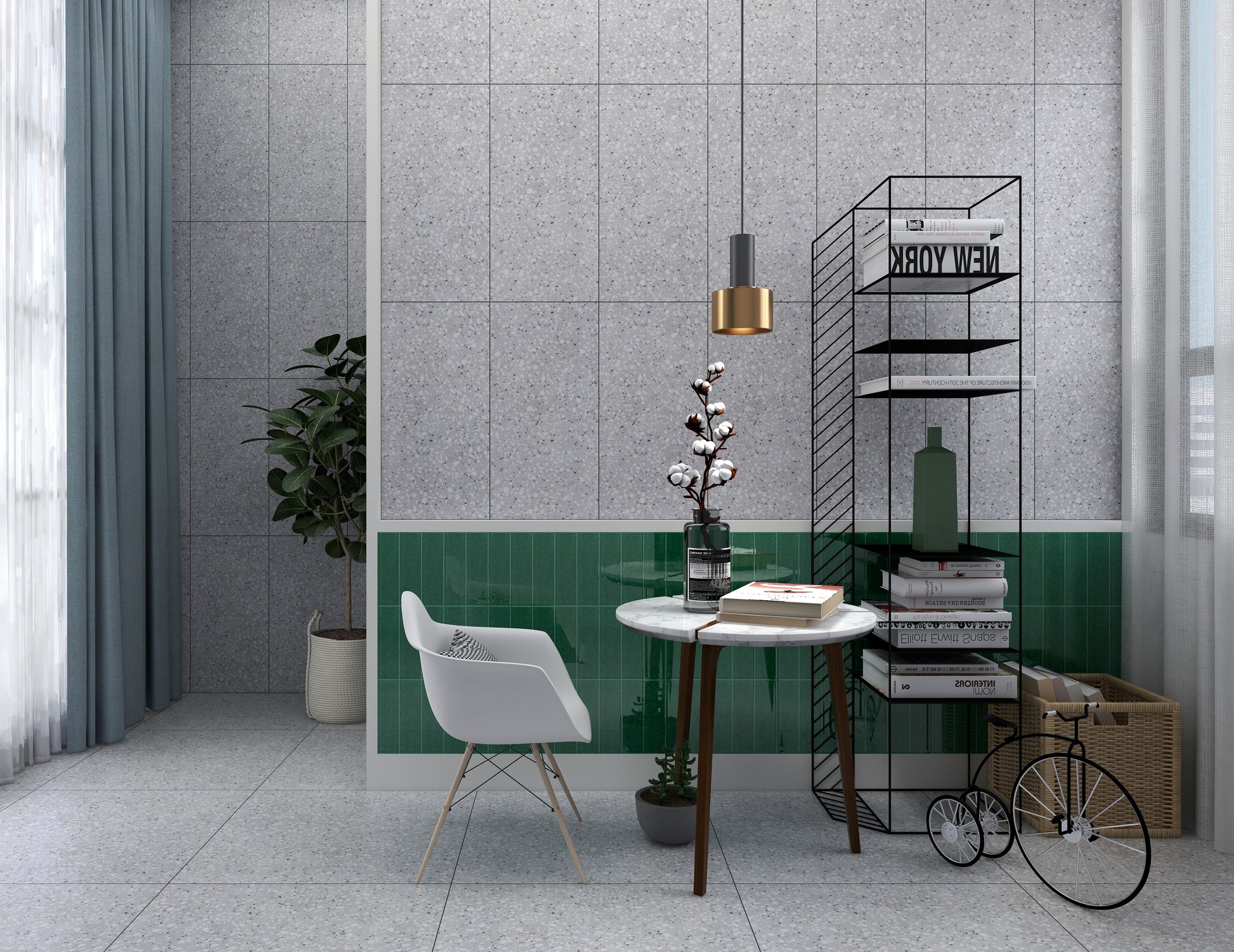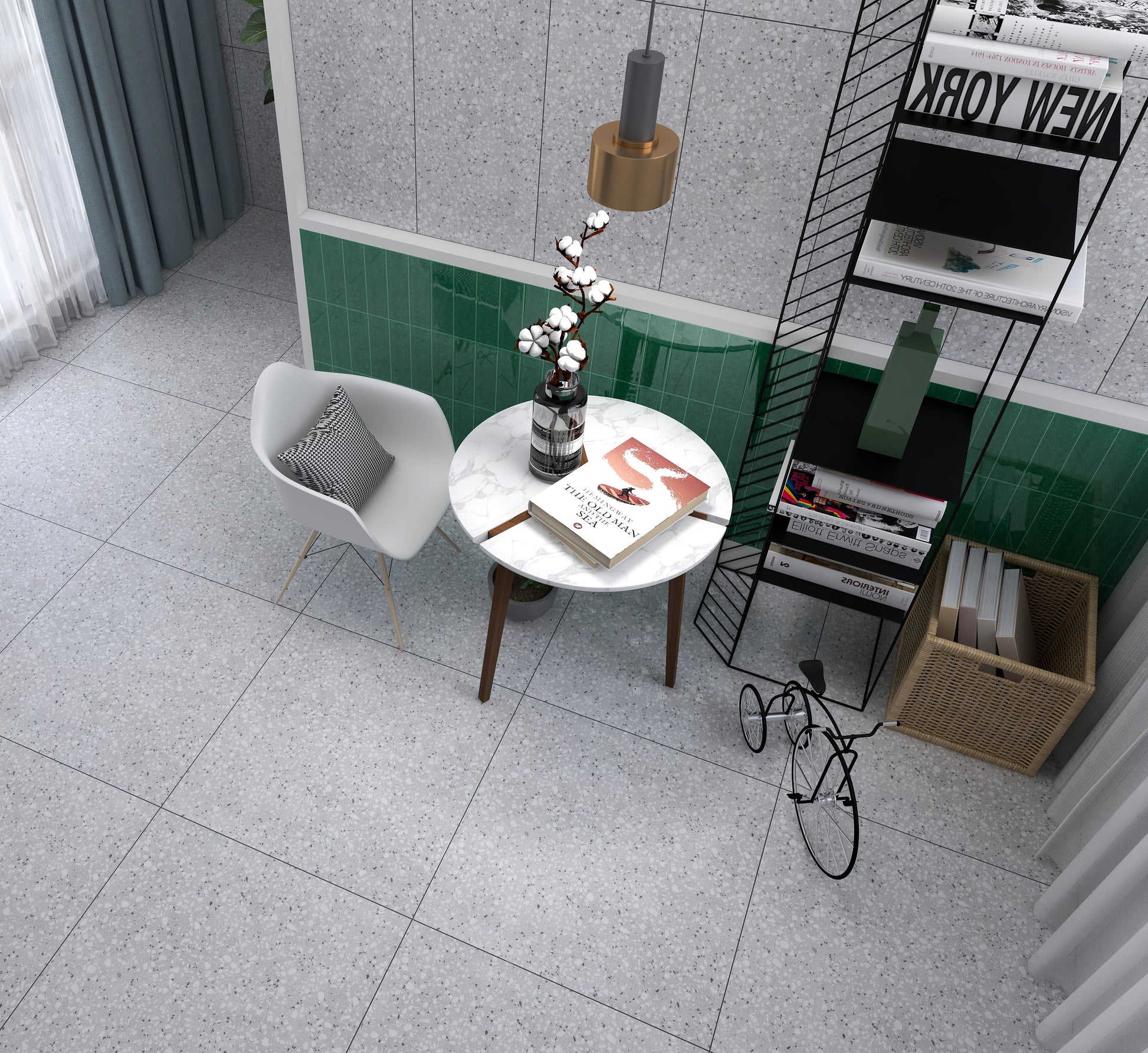 磨石子磚是一種懷舊的記憶,早期老房子的地板、牆壁都看的到磨石子磚的身影。 近年復古懷舊的設計風格又將磨石子磚重新詮釋了一番,基底一樣有著灰色小石子的紋理,搭配點綴的小色塊元素,使磨石子磚更符合現代的設計元素又不失復古感。近年較特別的製成是將磨石子磚的元素融入花磚、大理石磁磚、清水模磚等等形成混搭風格,使用面積不多但整體視覺效果更顯得豐富且多變化。